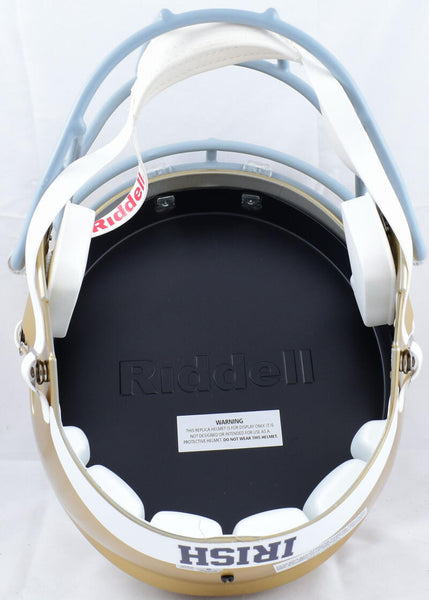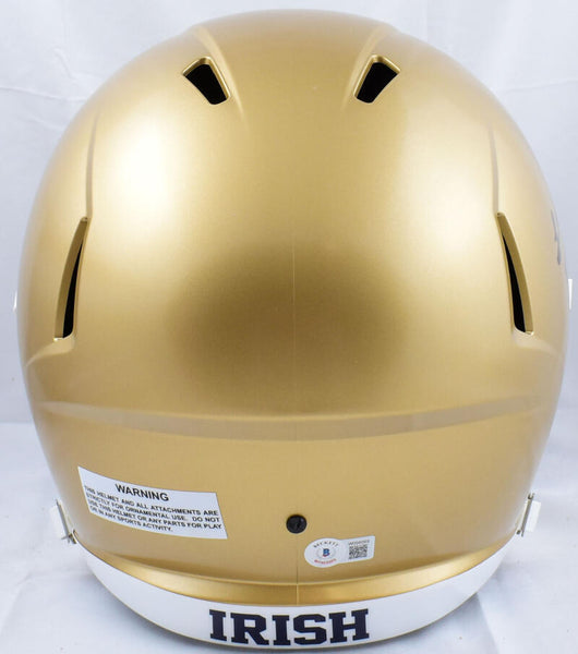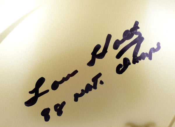 Lou Holtz Autographed Notre Dame Riddell F/S Speed Helmet w/Natl Champs-Beckett W Hologram *Black This is a hand autograph of Lou Holtz of the University of Notre Dame Fighting Irish on a Riddell Football Speed Replica Full Size Helmet. Inscribed Natl Champs. This item has a Beckett Witness Authentication, which comes with a Beckett numbered sticker hologram and a QR code for verification. You can view this item on the Beckett Authentication website, it shows when and where the item was signed. It was signed either at a public autograph appearance or a private signing. This is a stock photo of the item. Although you may not receive this exact item, the item you receive is virtually identical and brand new in great shape.