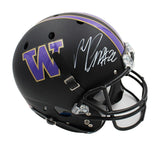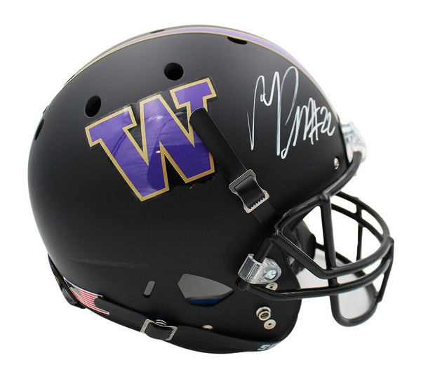 A Washington Huskies Schutt Replica Black NCAA Helmet hand signed by Marcus Peters. The item and signature are in excellent condition. Marcus is a 2x Pro Bowler, First-team All-Pro, NFL Defensive Rookie of the Year, and NFL Interceptions co-leader in 2015. AUTHENTICATION: The item is accompanied by a Certificate of Authenticity - Serial Numbered and Databased Hologram - Picture of Marcus from the signing.