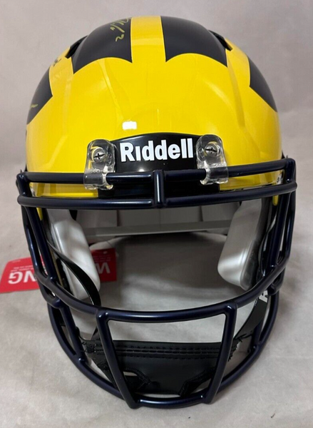 NEW!RIDDELL MICHIGAN WOLVERINES FULL SIZE SPEED AUTHENTIC HELMET. AUTOGRAPHED BY MEMBERS OF THE 2023 NATIONAL CHAMPIONSHIP TEAM"GO BLUE""15-0""23 CHAMPS"INSCRIPTIONSNOTABLE SIGNATURES INCLUDE:JJ McCarthyBlake CorumMike SainristilColston LovelandWill JohnsonMason GrahamDerrick MooreSemaj MorganMakari PaigeMax BredesonMyles HintonKal-El MullingsTommy DomanKenneth GrantErnest HausmannQuentin JohnsonJosiah StewartBECKETT WITNESSED QR CODE HOLOGRAM COA