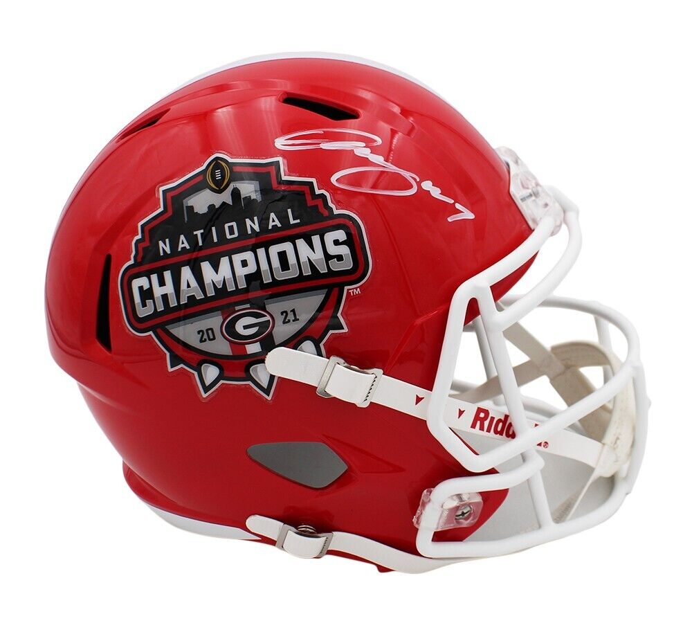 A Georgia Bulldogs Speed Replica National Championship Helmet hand signed by Quay Walker. The item and signature are in excellent condition. Quay is a football inside linebacker. He was drafted in the 1st round of the 2022 NFL Draft by the Green Bay Packers. He played for the Georgia Bulldogs in college and is a CFP Champion. AUTHENTICATION: The item is accompanied by a Certificate of Authenticity - Serial Numbered and Databased Hologram - Photo of Quay from the Signing -