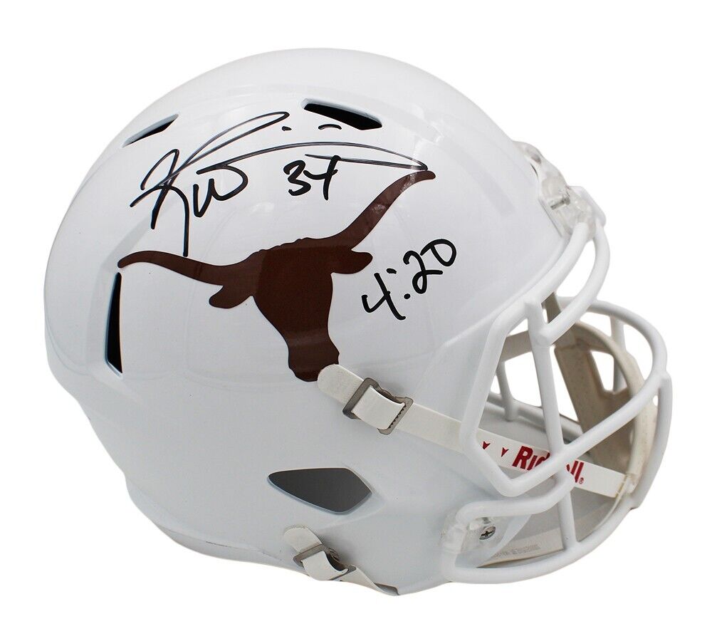 A Miami Dolphins Speed Replica NFL Helmet hand signed by Ricky Williams. The item and signature are in excellent condition. In addition to signing his name, Ricky also inscribed "Smoke Weed Everyday!" on the item. Ricky is a former American football running back who played 11 seasons in the NFL. Ricky played college football for the University of Texas, where he was a two-time All-American and won the Heisman Trophy. Ricky was drafted by the New Orleans Saints before being traded to the Miami Dolphins. He also spent a season with the Baltimore Ravens. AUTHENTICATION: Your item is tagged with a Ricky Williams Exclusive SmarTag powered by Prova Technology, which gives you digital access to your items authentication records, which include a proof picture from the signing.