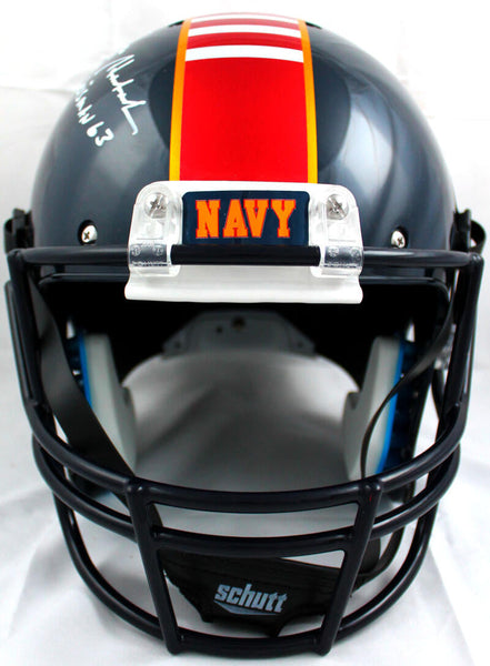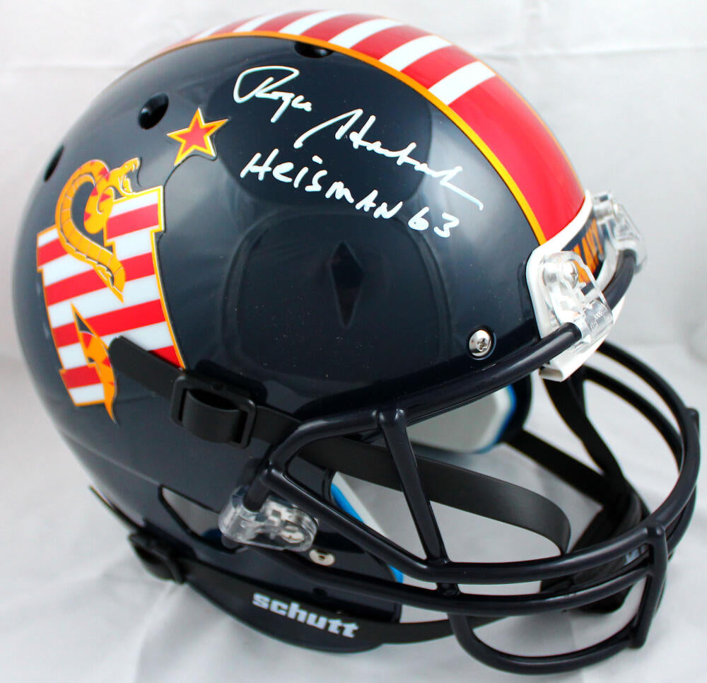 Roger Staubach Signed Navy F/S Schutt DTOM Helmet w/ Heisman-Beckett W Hologram *White This is a hand autographed helmet of Roger Staubach of the Navy Midshipmen. This is a Schutt Football Replica full size helmet. This item has a Beckett Witness Authentication, which comes with a Beckett numbered hologram and a QR code for verification. You can view this item on the Beckett Authentication website and it shows when and where the item was signed. It was signed either at a public autograph appearance or a private signing. This is a stock photo of the item. Although you may not receive this exact item, the item you receive is virtually identical and brand new in great shape.