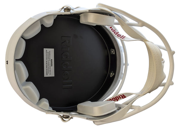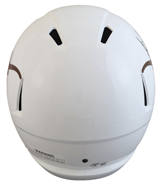 This Autographed Full Size Speed Rep Helmet has been Personally Signed by Vince Young of the Texas Longhorns. This item is 100% Authentic to include a hologram by Beckett Authentication Services. This item may come with the new Beckett Authentication hologram that has a scannable QR code rather than the traditional COA. If you would like to have a COA, you are welcome to reach out to Beckett for a printed certification once you receive your item. This is a BAS Witnessed Protection Program item which means a Beckett Authentication Service representative was present when this item was being signed. We conducted an autograph signing with Vince Young where multiples of the same item were signed. While the photographs are representative of this item, the size, placement and strength of the signature may vary. Each item is hand signed, therefore, each autograph is unique. This item can be verified through BAS Witnessed.