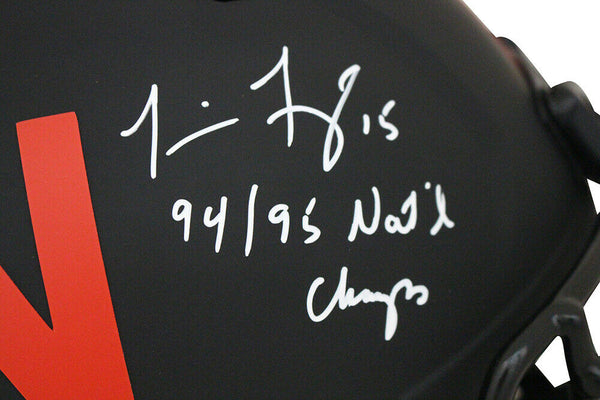 Tommie Frazier Autographed Nebraska F/S Eclipse Helmet 94/95 Champs BAS 31307 The number in the listing title is just an inventory sku for our records and is not the authentication number. This is a Nebraska Cornhuskers full size Eclipse speed replica helmet that was personally autographed by Tommie Frazier with 94/95 Champs inscription. Includes a certificate of authenticity from Beckett Authentication Services (BAS) and Denver Autographs.