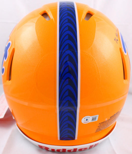 Tony Dorsett Autographed Pittsburgh Panthers F/S Speed Authentic Helmet w/ 2 Insc- BA W Holo*Black This is a hand autographed of Tony Dorsett on a Pittsburgh Panthers Riddell Speed Authentic Helmet. It has been inscribed with '76 Heisman Natl Champs. This item has a Beckett Witnessed Authentication, which comes with a numbered sticker hologram and a QR code for verification. You can view this item on the Beckett Authentication website and it shows when and where the item was signed. It was signed either at a public autograph appearance or a private signing. This is a stock photo of the item. Although you may not receive this exact item, the item you receive is virtually identical and brand new in great shape.
