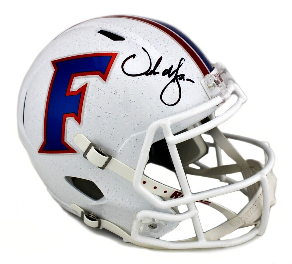 A Florida Gators Throwback Speed Replica Helmet Hand Signed by Head Coach Urban Meyer. The item and signature are in excellent condition. Urban is a 2x BCS National, 2x SEC Champion, and 2004 Home Depot Coach of the Year Award Winner. Don't miss out on this excellent piece from a coaching icon! AUTHENTICATION: This item is accompanied by an Urban Meyer Hologram.