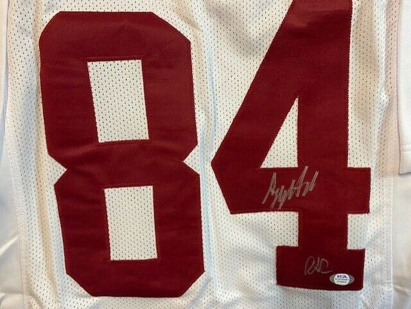 Custom on-field style jersey. Everything is sewn on, size XL. Hand-signed by Agiye Hall. The lot / autograph(s) includes an official PSA/DNA hologram for authenticity purposes. The signing of this item was witnessed by PSA.Authentication: PSA Hologram