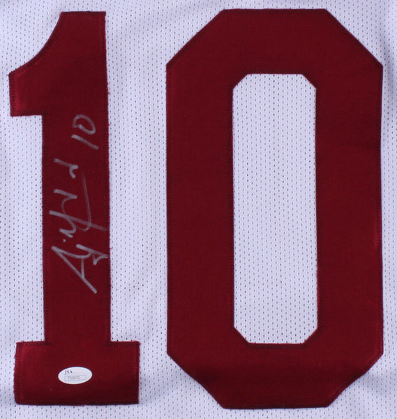 Custom on-field style jersey. Everything sewn on, size XL. Hand-signed in silver paint pen by AJ McCarron. The lot / autograph(s) includes an official James Spence Authentication (JSA) hologram and matching COA for authenticity purposes.Authentication: JSA COA Save on shipping when buying multiple items 2nd & 3rd jerseys ship FREE