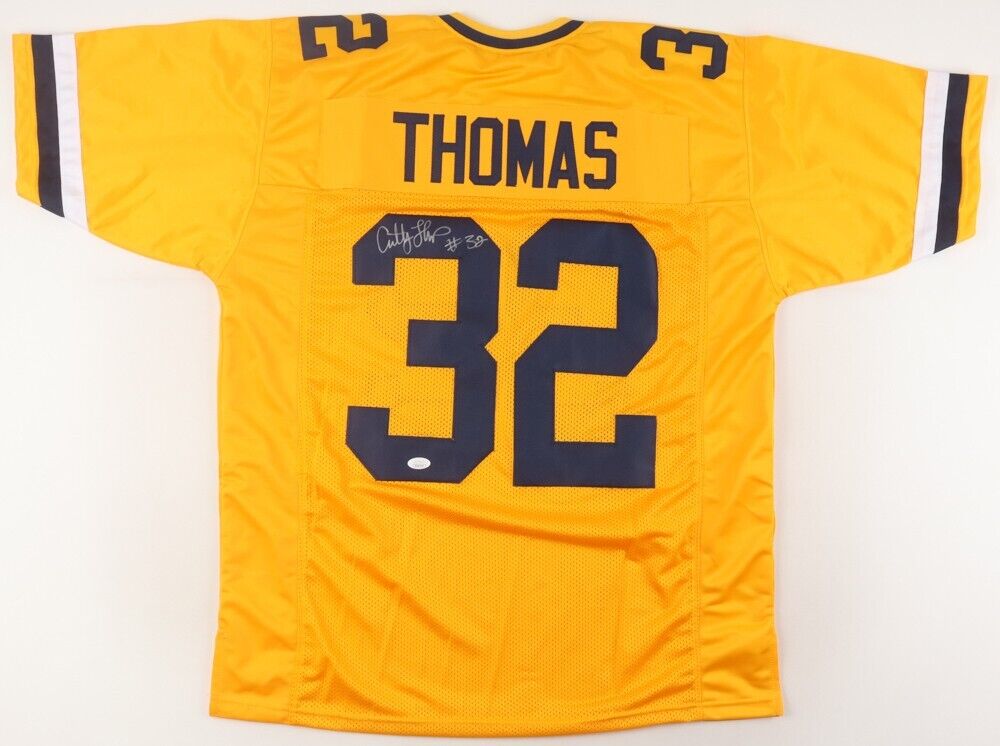 Custom on-field style jersey with everything sewn on, size, XL. Has been hand-signed and inscribed by Anthony Thomas. The autograph(s) includes an official James Spence Authentication (JSA) hologram and matching COA for authenticity purposes. The signing of this item was witnessed by JSA.Authentication: JSA COA