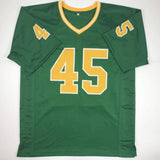 Autographed/Signed Rudy Ruettiger Notre Dame Green Rudy College Jersey JSA COA This is a custom jersey and was not manufactured by or in any manner associated with any professional sports league or manufacturer. This custom jersey carries no professional sports league designation. The item is intended to be an autographed collectible. Reference of team in the title is to allow the purchaser a point of association. The custom jersey displays the name, number and authenticated signature of the player. This item in no way is affiliated with or connected to any professional sports organization. The autograph, as always is guaranteed to be authentic and has been certified as authentic by a third-party, trusted authenticator. Size is XL unless otherwise noted.