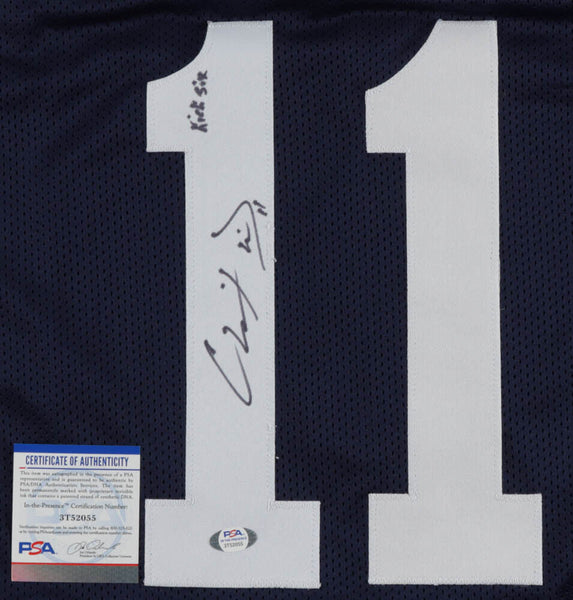 Custom on-field style jersey. Everything is sewn on, size XL. Hand-signed and inscribed by Chris Davis Jr. Davis was involved in the 2013 Iron Bowl play referred to as "Kick Six." With one second left on the clock and the score tied at 28, Alabama Kicker Adam Griffith missed a 57-yard game-winning field goal attempt which was caught by Davis and returned 109 yards for a game-winning touchdown.The lot / autograph(s) includes an official PSA/DNA hologram and matching COA for authenticity purposes. The signing of this item was witnessed by PSA.Authentication: PSA COA