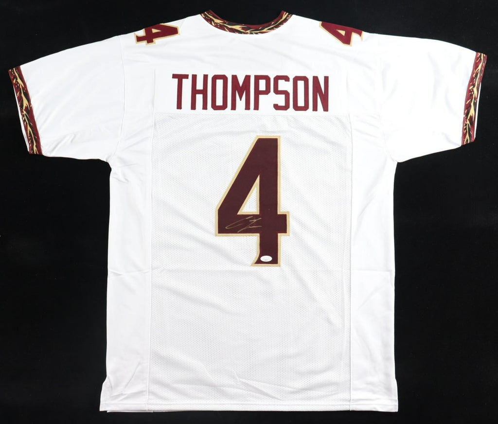 Custom on-field style jersey. Everything sewn on, size XL. Has been hand-signed by Chris Thompson.The lot / autograph(s) includes an official James Spence Authentication (JSA) hologram and matching COA for authenticity purposes. Authentication: JSA COA