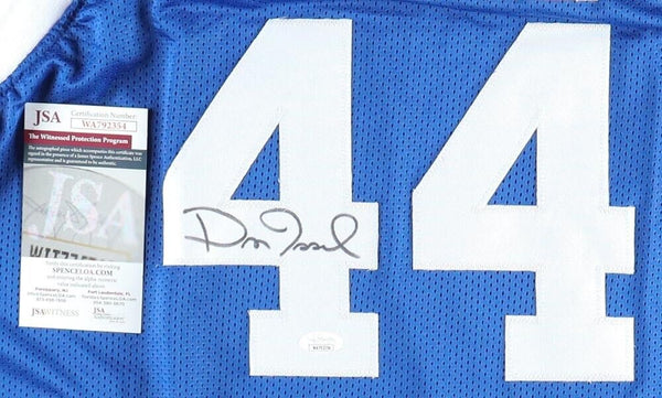 This autographed jersey has been personally hand-signed by Dan Issel of the Kentucky Wildcats.This autograph is certified by James Spence Authentication's (JSA) Witnessed Protection Program. That means that a JSA representative was present when this item was signed. It comes with the numbered hologram and matching Certificate of Authenticity. Custom on-field style jerseys are a more affordable option for autograph seekers. These jerseys do not have any brand name or tags and are made in the Philippines. They feature stitched on names and numbers and are made to look very similar to the on-field jerseys that the players wear. These custom jerseys are very commonly used in the memorabilia industry.