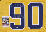 Custom on-field style jersey. Everything is sewn on, size XL. Hand-signed and inscribed by Darryl Talley.The lot / autograph(s) includes an official James Spence Authentication (JSA) hologram and matching COA for authenticity purposes. The signing of this item was witnessed by JSA.Authentication: JSA COA