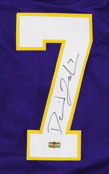 A Northern Iowa Custom Purple Jersey hand signed by David Johnson. The item and signature are in excellent condition. David Johnson is a NFL Running back for the Arizona Cardinals. He was drafted 3rd round in the 2015 NFL Draft. In college David played for Northern Iowa. He is a Pro Bowler, & a 2016 First Team All Pro. AUTHENTICATION: The item is accompanied by a Certificate of Authenticity - Serial Numbered and Databased Hologram - Picture of David from the Signing -