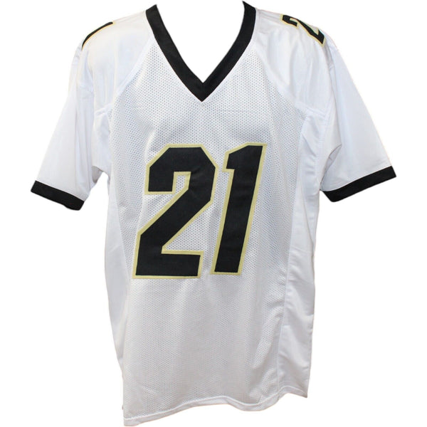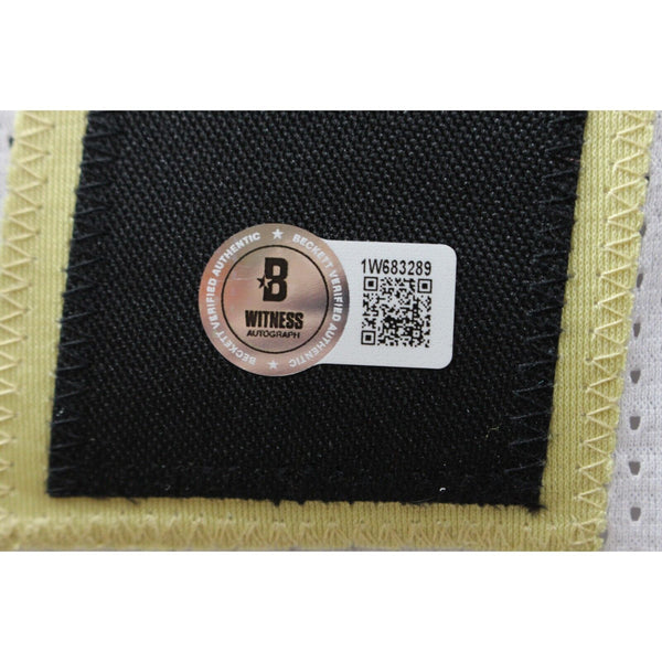 The number in the listing title is just an inventory sku for our records and is not the authentication number. The item pictured is a stock photo unless otherwise noted. This is a college style white jersey with sewn on numbers that was personally autographed by Deion Sanders. Includes a certificate of authenticity from Beckett Authentication Services (BAS) and Denver Autographs.