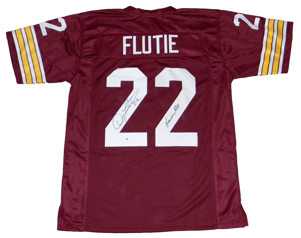 DOUG FLUTIE AUTOGRAPHED BOSTON COLLEGE EAGLES #22 JERSEY BECKETT W/ HEISMAN 84