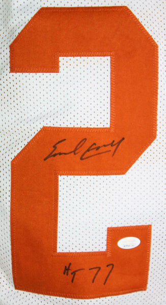 Earl Campbell Autographed White College STAT 3 Jersey W/ HT- JSA W Auth *2 THIS IS NOT AN NCAA JERSEY. THIS HAS NO TAGS, NO LOGOS, NO EMBLEMS. This is a hand autograph of Earl Campbell on a Custom Made (non name brand) Authentic Style Jersey with stitched letters and numbers. This item has a James Spence Witness Protection Authentication, which comes with a JSA numbered sticker and a matching Certificate of Authenticity. You can view this item on the SpenceLOA website, it shows when and where the item was signed. It was signed either at a public autograph appearance or a private signing. This is a stock photo of the item. Although you may not receive this exact item, the item you receive is virtually identical and brand new in great shape. Jersey size is XL.