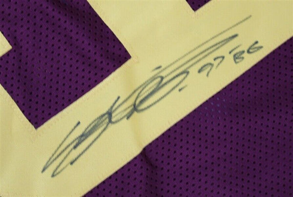 Custom on-field style jersey. Everything is sewn on, size XL. Hand-signed and inscribed in black paint pen by Everson Griffen. He added the inscription "BG" along with his signature. This autograph is certified by Beckett Authentication Services (BAS) Witness Certification. That means that a Beckett representative was present when this item was signed. It comes with the numbered authentication hologram and matching Certificate of Authenticity.