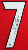 This Autographed Red Pro Style Framed Jersey has been Personally Signed by Nakobe Dean of the Georgia Bulldogs. This item is 100% Authentic and comes with a PSA/DNA Certification numbered Hologram. Please note that PSA/DNA no longer provides serial-numbered COA cards, and the attached PSA/DNA sticker will serve as the complete authentication for this item. This is a PSA in the Presence Authenticated item which means a PSA representative was present when this item was being signed. We conducted an autograph signing with Nakobe Dean where multiples of the same item were signed. While the photographs are representative of this item, the size, placement and strength of the signature may vary. Each item is hand signed, therefore, each autograph is unique. This item can be verified through PSA/DNA Itp. This item has been professionally framed to overall dimensions of approximately 32 x 37 inches. This is a X-Large sized, non-branded, custom-stitched Framed Jersey. This jersey will be framed to order, it will take approximately 3-4 business days from purchase date for it to ship.