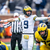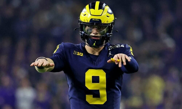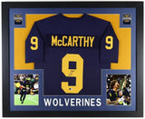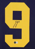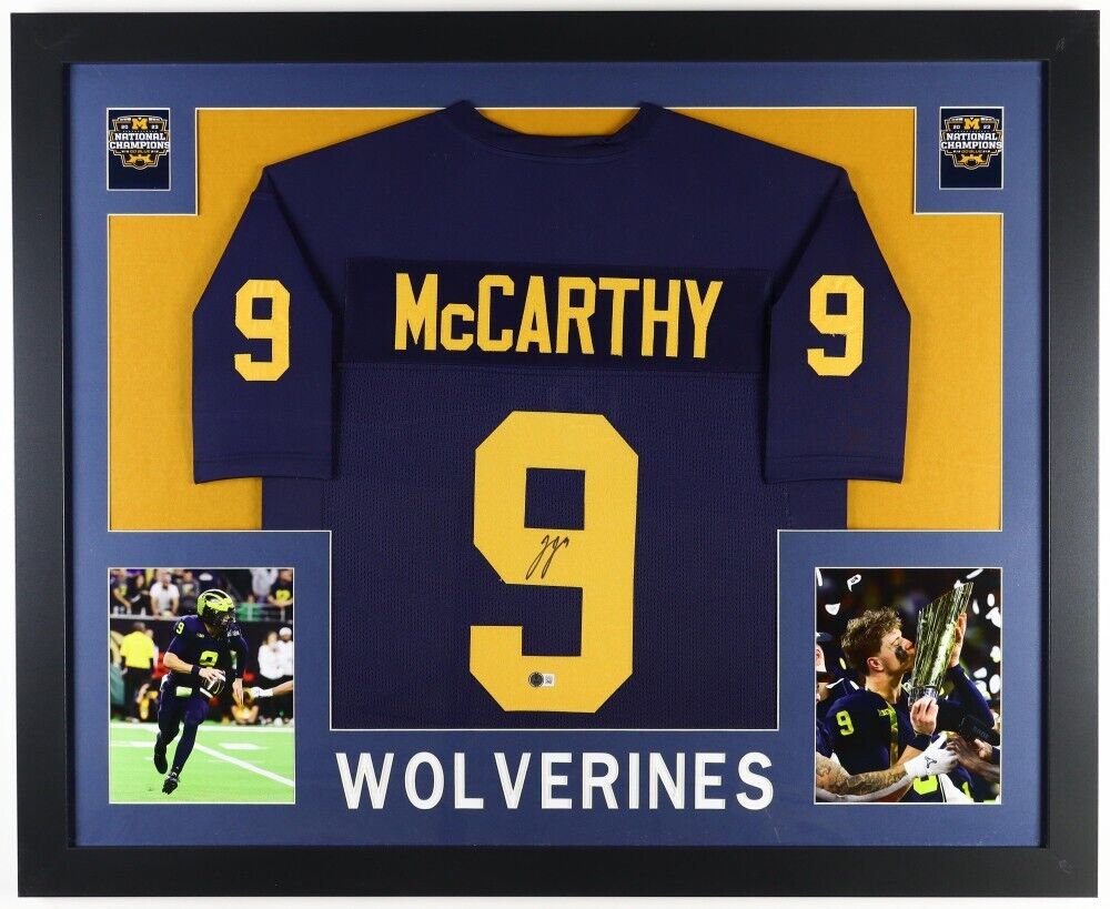 Custom frame measures approximately 35" x 43" in size and features a jersey which has been hand-signed in black Sharpie pen by J. J. McCarthy. The autograph includes an official Beckett Authentication Services serially numbered hologram and QR Code card for authenticity purposes.Authentication: Beckett Hologram & QR Code card