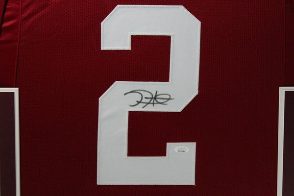 JALEN HURTS AUTOGRAPHED & PROFESSIONALLY FRAMED PRO-STYLE JERSEY(Occasionally our own stock pictures are used at times due to quantity of framing, all frames will look identical as the one pictured)THE FRAMED JERSEY MEASURES 35"x 44" & COMES WITH THE FOLLOWING:-UV Protected Acrylic-Triple Acid Free Team Colored Matting-2 High Quality 8"x10" Photos-Team LogoEvery framed autographed jersey is accompanied with a tamper-proof hologram on the signed part of the jersey from one of the main authenticators in the industry (JSA, Beckett, PSA, etc.) and can be verified on their corresponding websites to prove authenticity.ATTENTION:If there's any damage during shipping then please message us immediately and save the box!DO NOT OPEN A RETURN OR DISPUTE PLEASE!We will provide a return label to send the frame back so we can fix any issues right away and ship it right back to you, free of charge of course!WE DO NOT OFFER PARTIAL REFUNDS TO FIX LOCALLY AS EVERYTHING IS FRAMED/FIXED IN HOUSE- Thank you -