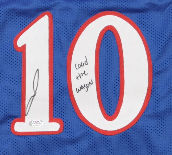 Custom on-court style jersey. Everything sewn on, size XL. Hand-signed by Jalen Wilson.The autograph includes an official PSA/DNA hologram for authenticity purposes. The signing of this item was witnessed by PSA.Authentication: PSA Hologram