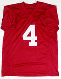 Jerry Jeudy Autographed Red College Style Jersey - Beckett W Auth *4 THIS IS NOT AN NCAA JERSEY. THIS HAS NO TAGS, NO LOGOS, NO EMBLEMS. This is a hand autographed Jersey of Jerry Jeudy. This is Custom Made (non name brand) Authentic Style (stitched letters and numbers) Jersey. This item has a Beckett Witnessed Authentication, which comes with a numbered and a matching Certificate of Authenticity. You can view this item on the Beckett Authentication website, it shows when and where the item was signed. It was signed either at a public autograph appearance or a private signing. This is a stock photo of the item. Although you may not receive this exact item, the item you receive is virtually identical and brand new in great shape. Jersey size is XL.