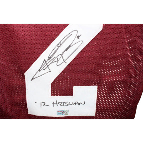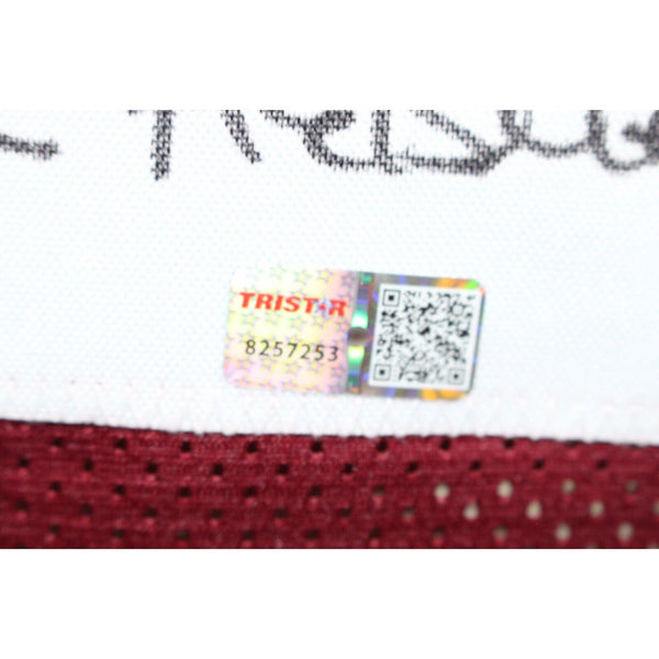 Johnny Manziel Autographed College Style Maroon Jersey Heisman TRI 43516 The number in the listing title is just an inventory sku for our records and is not the authentication number. The item pictured is a stock photo unless otherwise noted. This is a College Style Maroon Jersey that was personally autographed by Johnny Manziel with "Heisman" inscription. Includes a certificate of authenticity from Tristar Authentic (TRI) and Denver Autographs.