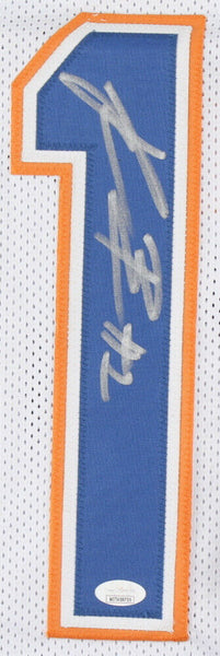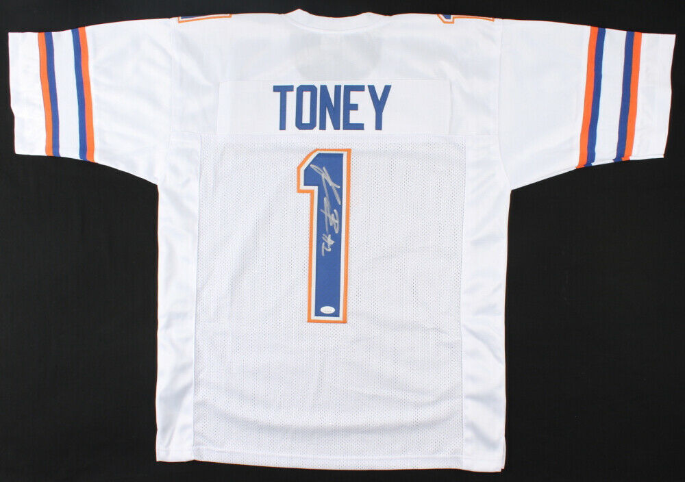 Custom on-field style jersey. Everything sewn on, size XL. Hand-signed by Kadarius Toney.The lot / autograph(s) includes an official James Spence Authentication (JSA) hologram and matching COA for authenticity purposes. The signing of this item was witnessed by JSA.Authentication: JSA COA