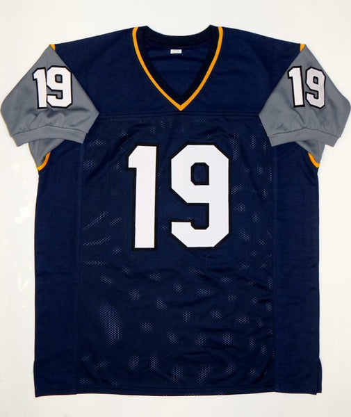 THIS IS NOT A NCAA JERSEY. This HAS NO TAGS, NO LOGOS, NO EMBLEMS. This is a hand autographed Jersey of Keenan Reynolds. This is Custom Made (Non Name Brand) Authentic Style (Stitched Letters and Numbers). This item has a James Spence Witness Protection Authentication, which comes with a JSA numbered sticker and a matching JSA COA. You can view this item on the SpenceLOA website and it shows when and where the item was signed. It was signed either at a public autograph appearance or a Private Signing. This is a stock photo of the item. Although you may not receive this exact item, the item you receive is virtually identical and brand new in great shape. THIS IS NOT A NCAA JERSEY. This HAS NO TAGS, NO LOGOS, NO EMBLEMS. This is a hand autographed Jersey of Keenan Reynolds. This is Custom Made (Non Name Brand) Authentic Style (Stitched Letters and Numbers). This item has a James Spence Witness Protection Authentication, which comes with a JSA numbered sticker and a matching JSA COA. You can view this item on the SpenceLOA website and it shows when and where the item was signed. It was signed either at a public autograph appearance or a Private Signing. This is a stock photo of the item. Although you may not receive this exact item, the item you receive is virtually identical and brand new in great shape.