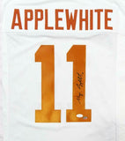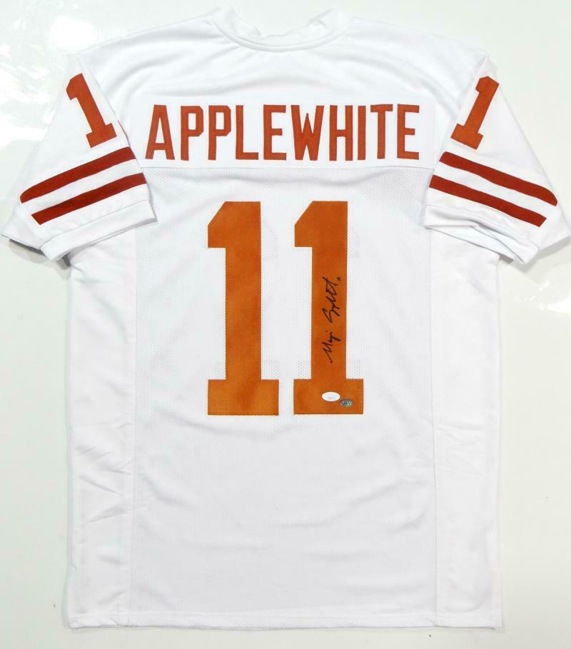 Major Applewhite Autographed White Pro Style Jersey- JSA Authenticated *R1 THIS IS NOT AN NCAA JERSEY. THIS HAS NO TAGS, NO LOGOS, NO EMBLEMS. This is a Hand Autographed Jersey of Major Applewhite. This is Custom Made (Non Name Brand) Authentic Style (Stitched Letters and Numbers) Jersey. This item has a James Spence Authentication, which Comes with a JSA #'ed Sticker and a Matching JSA COA. You can view this item on the SpenceLOA website. It was signed either at a public autograph appearance or a Private Signing. This is a stock photo of the item. Although you may not receive this exact item, the item you receive is virtually identical and brand new in great shape. Jersey size is XL.