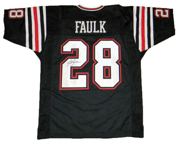 Marshall Faulk, former All-American running back for the San Diego State Aztecs, has hand signed this black custom jersey at a private signing. Jersey is size XL and all letters/numbers are sewn-on. This item comes with a certificate of authenticity (COA) from JSA - James Spence Authentication and was signed in the presence of one of their representatives. You will receive a serial-numbered COA along with a matching serial-numbered sticker on the jersey. The authenticity can be verified online by entering the serial number.Item pictured may not be the exact item you will receive. It will be similar quality, and we guarantee your satisfaction.