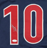 Custom on-court style jersey. Everything is sewn on, size XL. Has been hand-signed by Mike Bibby. Bibby's career highlights have been custom stitched onto the back of the jersey below the reverse numbers.The lot / autograph(s) includes an official James Spence Authentication (JSA) hologram and matching COA for authenticity purposes. The signing of this item was witnessed by JSA.Authentication: JSA COA