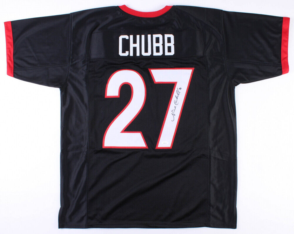 Custom on-field style jersey. Everything is sewn on, size XL. Hand-signed in black felt-tip pen by Nick Chubb. The lot / autograph(s) includes an official James Spence Authentication (JSA) hologram for authenticity purposes. The signing of this item was witnessed by JSA.Authentication: JSA Hologram