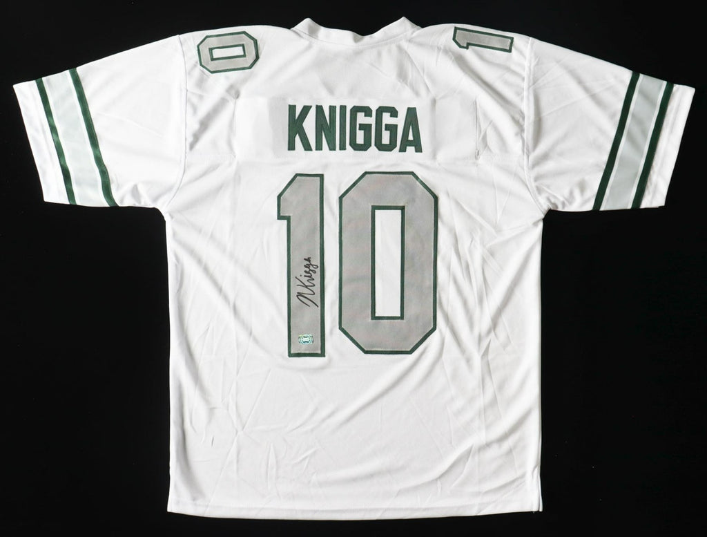 Custom on-field style jersey with everything sewn on, size XL. Jersey has been hand-signed by Noah Knigga. Knigga and his family clarified their surname is pronounced kuh-nay-ga.The lot / autograph(s) includes an official Wilder Side of Sports scannable hologram for authenticity purposes.Authentication: Wilder Side of Sports Scannable HologramCustom on-field style jerseys are a more affordable option for autograph seekers. These jerseys do not have any brand name or tags and are made in the Philippines. They feature stitched on names and numbers and are made to look very similar to the on-field jerseys that the players wear. These custom jerseys are very commonly used in the memorabilia industry.
