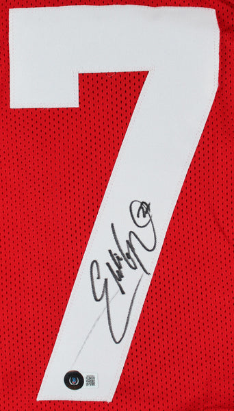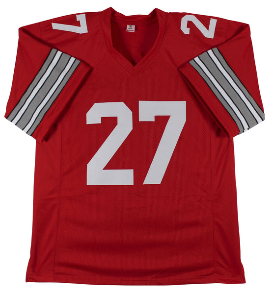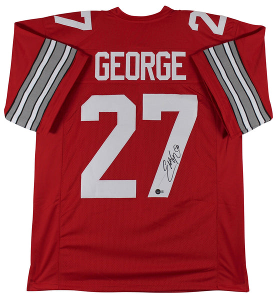 This Autographed Red Pro Style Jersey has been Personally Signed by Eddie George of the Ohio State Buckeyes. This item is 100% Authentic to include a hologram by Beckett Authentication Services. This item will come with an affixed Beckett Authentication Services (BAS) authentication sticker, which includes a scannable QR code to verify authenticity. Please note that Beckett no longer provides serial-numbered COA cards, and the attached BAS sticker will serve as the complete authentication for this item. This is a BAS Witnessed Protection Program item which means a Beckett Authentication Service representative was present when this item was being signed. The authenticity can be verified on Beckett Authentication Services website. This is a X-Large sized, non-branded, custom-stitched Jersey.