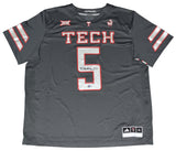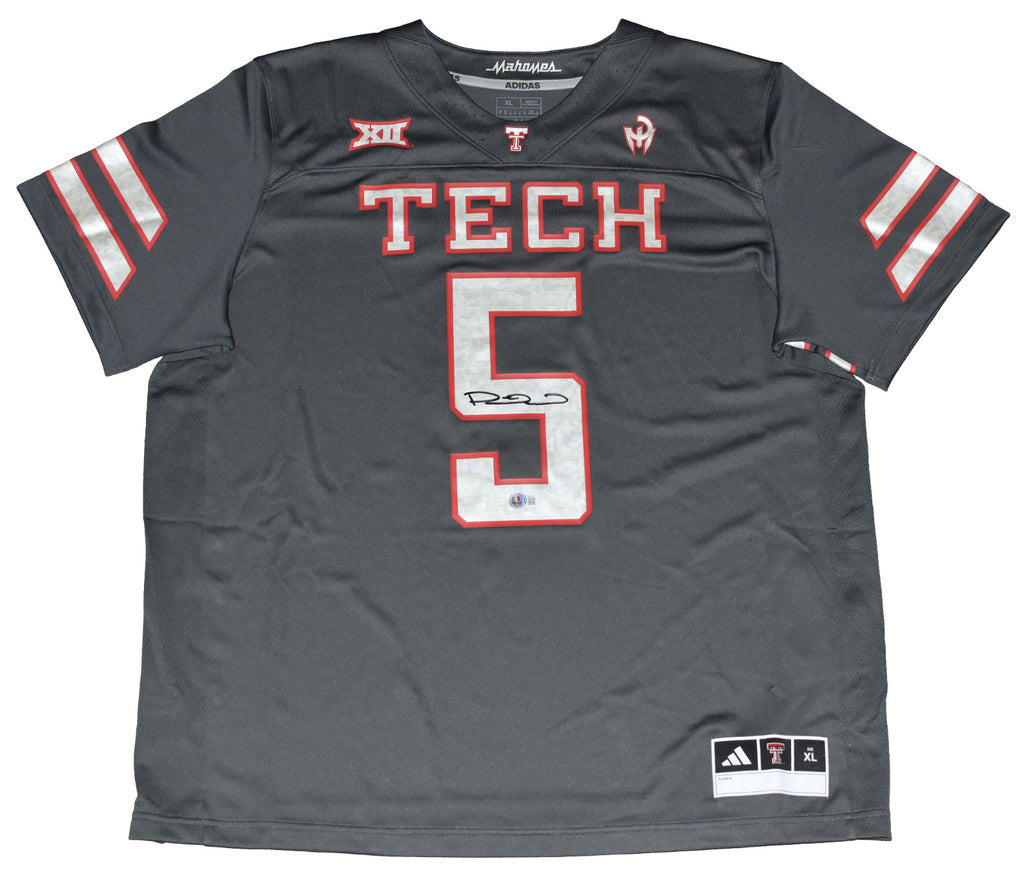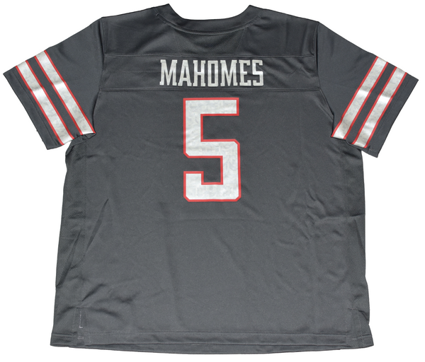 Patrick Mahomes, former star quarterback for the Texas Tech Red Raiders, has hand signed this Adidas Premier Galvanized jersey at a private signing. Jersey is new with tags attached and all letters/numbers are screen print. This item is authenticated by Beckett Authentication Services and was signed in the presence of one of their representatives. Their tamper-evident hologram featuring a QR code and serial number is on the item. The authenticity can be verified online by entering the serial number or scanning the QR code.Item pictured may not be the exact item you will receive. It will be similar quality, and we guarantee your satisfaction.