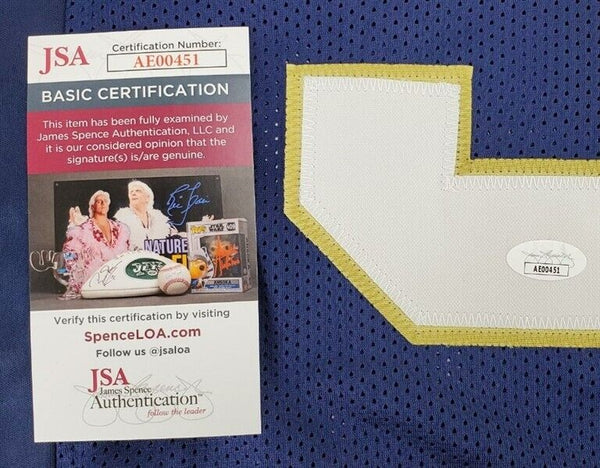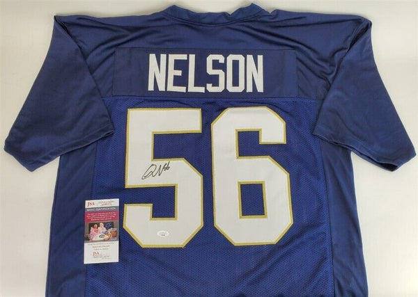 This autographed jersey has been personally hand-signed by Quenton Nelson of the Notre Dame Fighting Irish. This autograph is certified by James Spence Authentication (JSA). It comes with the numbered hologram and matching Certificate of Authenticity.Custom on-field style jerseys are a more affordable option for autograph seekers. These jerseys do not have any brand name or tags and are made in the Philippines. They feature stitched on names and numbers and are made to look very similar to the on-field jerseys that the players wear. These custom jerseys are very commonly used in the memorabilia industry.