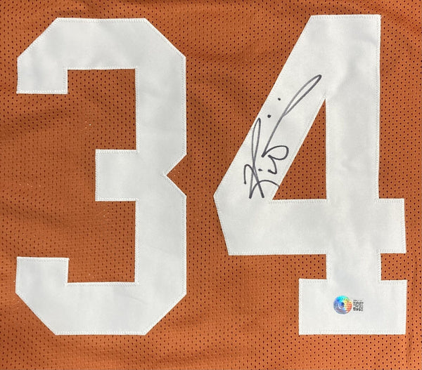Featured is a Ricky Williams signed custom football jersey. This jersey was hand signed by Williams and comes with the Beckett witnessed hologram and certificate of authenticity. This jersey has professionally sewn letters and numbers and is size XL. This jersey has no team tags or emblems and is intended as a sports collectible. SPECIFICATIONS Autographed By: Ricky Williams Team: Texas Longhorns Sport: Football Authentication: Beckett Authentication Services