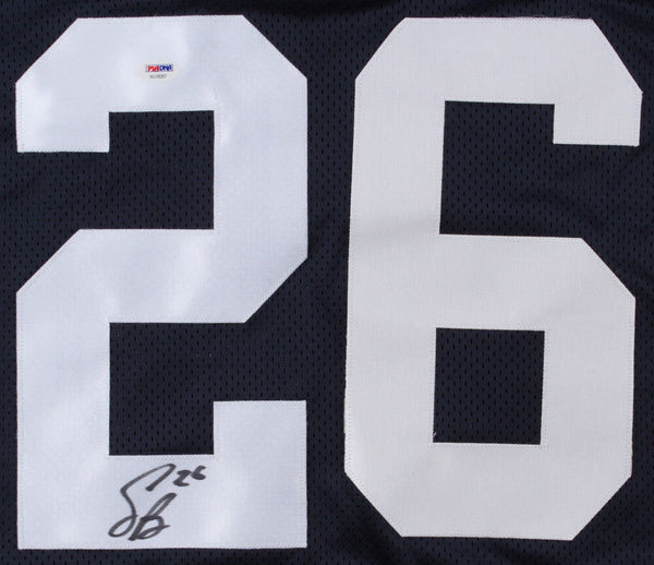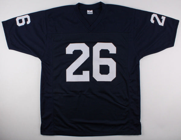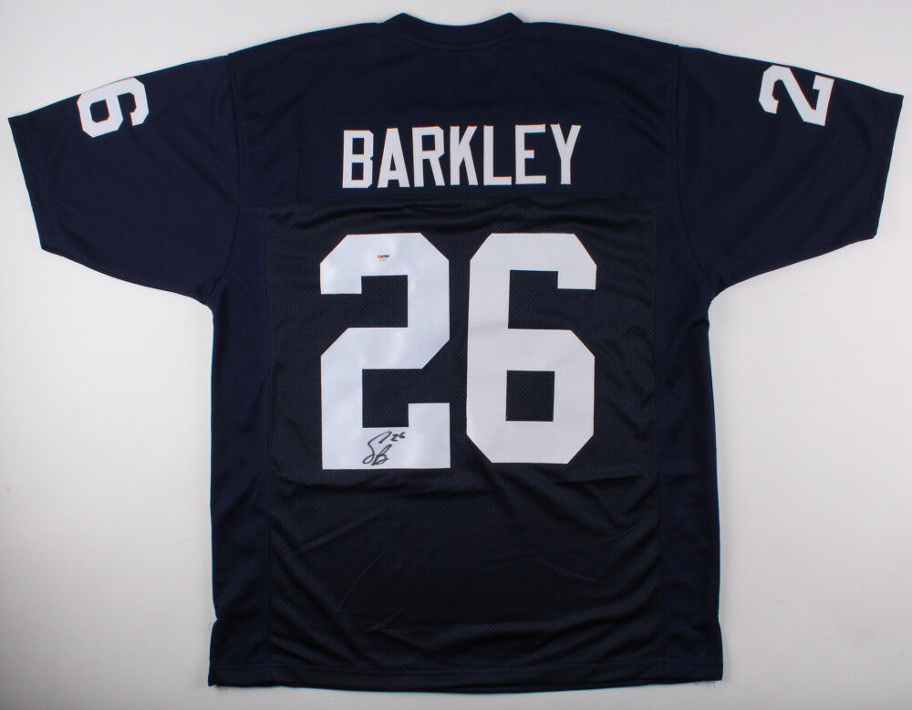 Custom on-field style jersey. Everything sewn on, size XL. Hand-signed in black felt-tip pen by Saquon Barkley. The lot / autograph(s) includes a PSA/DNA "Rookie Graph" hologram and COA. "Rookie Graph" is the autographed memorabilia equivalent to a rookie card. The PSA/DNA definition of a "Rookie Graph" is as follows: "Any item that is autographed and received by PSA/DNA prior to the beginning of the athlete's second full season.Authentication: PSA COA Shop our ebay store / Friendly Confines Collectibles for thousands of different autographed jerseys