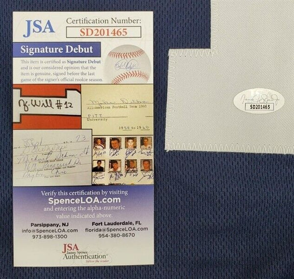 This autographed jersey has been personally hand-signed by Tyler Elsdon of the Penn State Nittany Lions. When signing, Elsdon inscribed "Linebacker U!" along with his signature.This autograph is certified by James Spence Authentication (JSA). It comes with the numbered hologram and matching Certificate of Authenticity.Custom on-field style jerseys are a more affordable option for autograph seekers. These jerseys do not have any brand name or tags and are made in the Philippines. They feature stitched on names and numbers and are made to look very similar to the on-field jerseys that the players wear. These custom jerseys are very commonly used in the memorabilia industry.