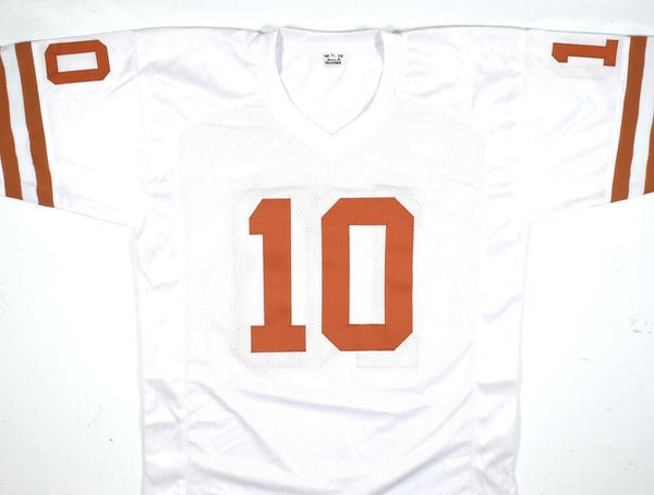 Vince Young Autographed College White Style Jersey - Beckett W Hologram *Black THIS IS NOT AN NCAA JERSEY. THIS HAS NO TAGS, NO LOGOS, NO EMBLEMS. This is a Hand Autographed Jersey of Vince Young. This is Custom Made (Non Name Brand) Authentic Style (Stitched Letters and Numbers) Jersey. This item has a Beckett Witness Authentication, which Comes with a Beckett hologram and a QR code for verification. You can view this item on the Beckett website, it shows when and where the item was signed. It was signed either at a public autograph appearance or a Private Signing. This is a stock photo of the item. Although you may not receive this exact item, the item you receive is virtually identical and brand new in great shape. Jersey size is XL.