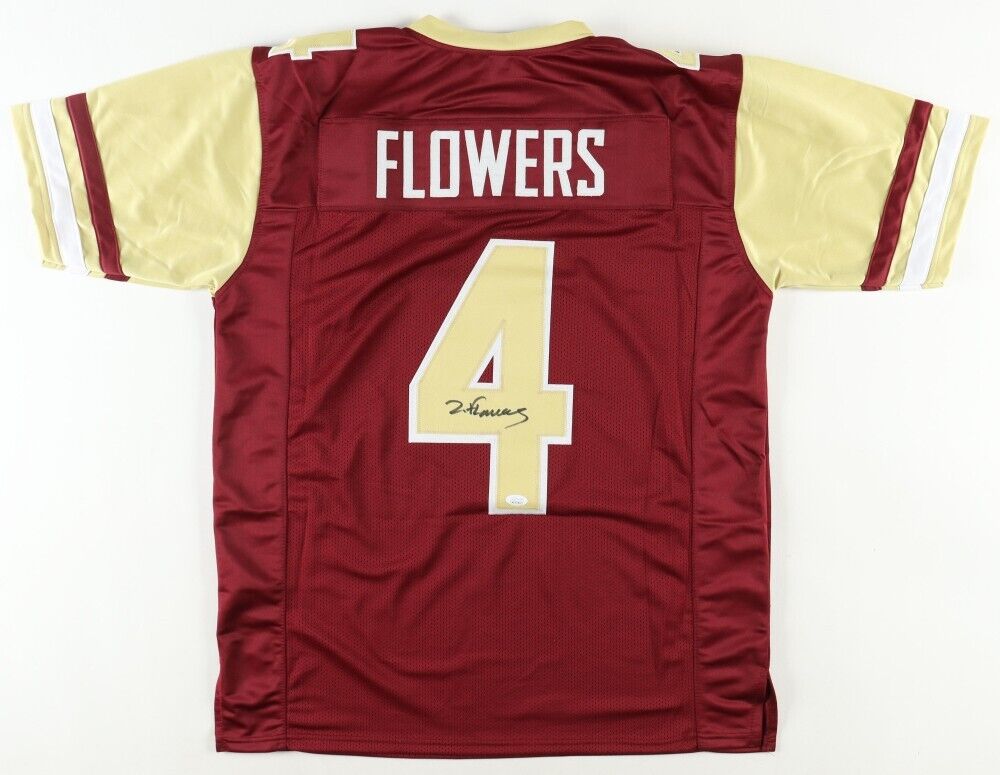 Custom on-field style jersey. Everything is sewn on, size XL. Hand-signed by Zay Flowers.The autograph(s) includes an official James Spence Authentication (JSA) hologram and matching COA for authenticity purposes. The signing of this item was witnessed by JSA.Authentication: JSA COA