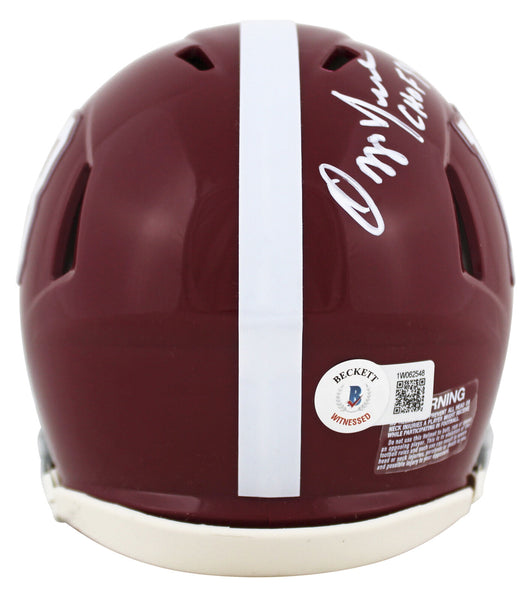 This Autographed Speed Mini Helmet with the inscription of "CHOF 94" has been Personally Signed by Ozzie Newsome of the Alabama Crimson Tide. This item is 100% Authentic to include a hologram by Beckett Authentication Services. This item will come with an affixed Beckett Authentication Services (BAS) authentication sticker, which includes a scannable QR code to verify authenticity. Please note that Beckett no longer provides serial-numbered COA cards, and the attached BAS sticker will serve as the complete authentication for this item. This is a BAS Witnessed Protection Program item which means a Beckett Authentication Service representative was present when this item was being signed. We conducted an autograph signing with Ozzie Newsome where multiples of the same item were signed. While the photographs are representative of this item, the size, placement and strength of the signature may vary. Each item is hand signed, therefore, each autograph is unique. This item can be verified through BAS Witnessed.