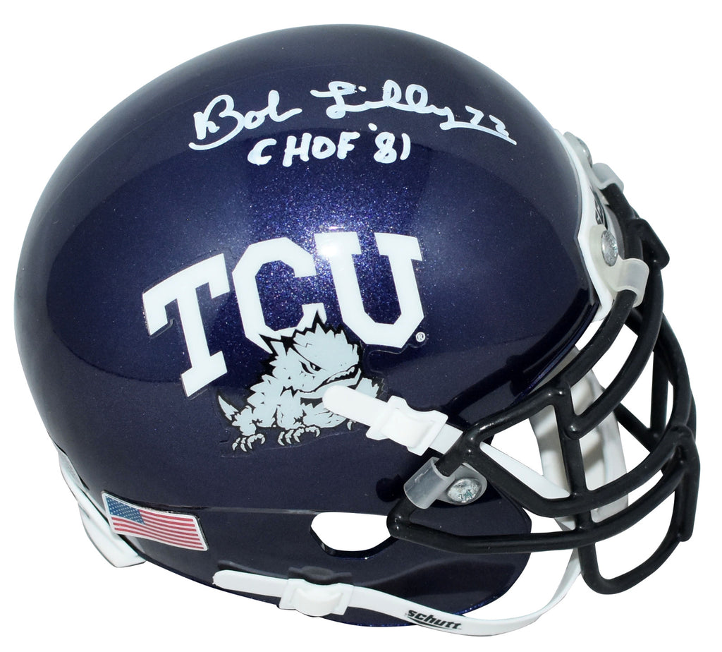 BOB LILLY AUTOGRAPHED TCU HORNED FROGS PURPLE MINI HELMET W/ CHOF 81