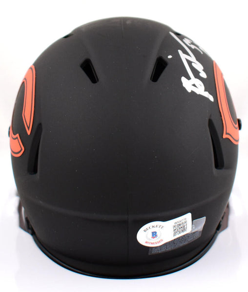 Brian Urlacher Autographed Chicago Bears Eclipse Speed Mini Helmet w/HOF - Beckett W Hologram *Silver This is a Brian Urlacher of the Chicago Bears hand autographed Riddell Football Eclipse Speed Mini Helmet w/HOF. It has a Beckett Witnessed Authentication, which comes with a Beckett numbered hologram and a QR code for verification. You can view this item on the Beckett website and it shows when and where the item was signed. It was signed either at a public autograph appearance or a private signing. This is a stock photo of the item. Although you may not receive this exact item, the item you receive is virtually identical, brand new, and in great shape.
