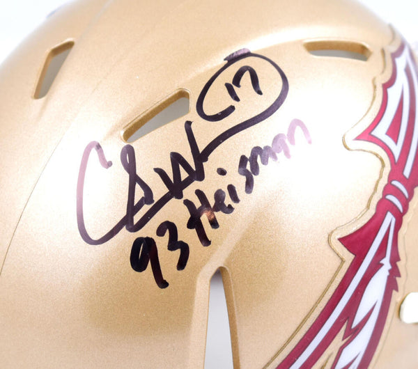 Charlie Ward Autographed Florida State Seminoles Speed Mini Helmet w/93 Heisman-Beckett W Hologram *Black This is a hand autographed Helmet of Charlie Ward of the Florida State Seminoles. This is a Riddell Football Speed Mini Helmet. Inscribed 93 Heisman. This item has a Beckett Witnessed Authentication, which comes with a Beckett numbered hologram and a QR code for verification. You can view this item on the Beckett website and it shows when and where the item was signed. It was signed either at a public autograph appearance or a private signing. This is a stock photo of the item. Although you may not receive this exact item, the item you receive is virtually identical and brand new in great shape.