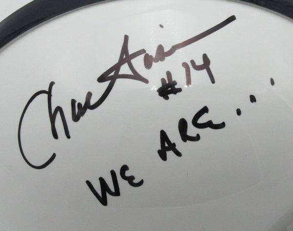Chuck Fusina Autographed/Inscribed "We Are..." White Mini Speed Football Helmet Penn State. This helmet is authenticated by JSA and includes their tamper-proof hologram sticker and Certificate of Authenticity.