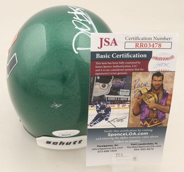 Schutt Miami Hurricanes mini helmet has been hand-signed by David Njoku. Please note, there is a smudge located on the rear of the helmet. Please see photos for more details regarding the condition of the helmet.The lot / autograph(s) includes an official James Spence Authentication (JSA) hologram and matching COA for authenticity purposes.Authentication: JSA COA